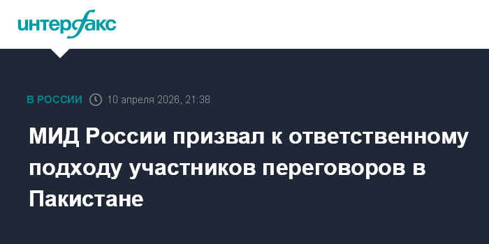 Москва. 10 апреля. INTERFAX.RU - МИД России призвал участников переговоров в Пакистане к ответственности в целях обеспечения стабилизации обстановки на Ближнем Востоке.