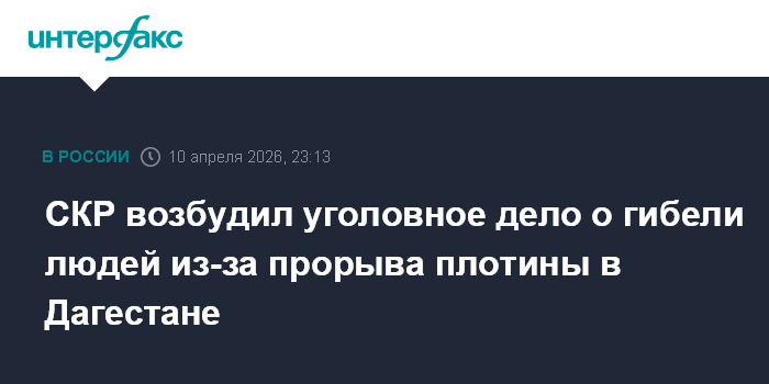 "В результате 5 апреля 2026 года произошел прорыв плотины Геджухского водохранилища, повлекший сход значительного объема воды, затопление участка федеральной автомобильной дороги "Кавказ" и прилегающих территорий", - напомнили в СКР, добавив, что "в следствие произошедшего погибли люди, а также причинен имущественный ущерб".