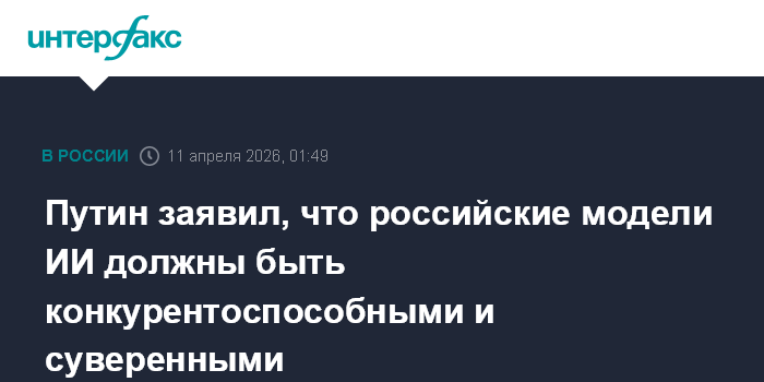 Москва. 10 апреля. INTERFAX.RU - Российские модели искусственного интеллекта должны быть конкурентными в мире и обладать максимальным уровнем суверенности, заявил президент РФ Владимир Путин.