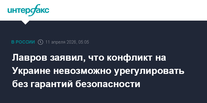 Москва. 11 апреля. INTERFAX.RU - Министр иностранных дел РФ Сергей Лавров заявил, что для урегулирования конфликта на Украине необходимы гарантии безопасности России, однако в Евросоюзе говорят только о таких гарантиях для Украины.
