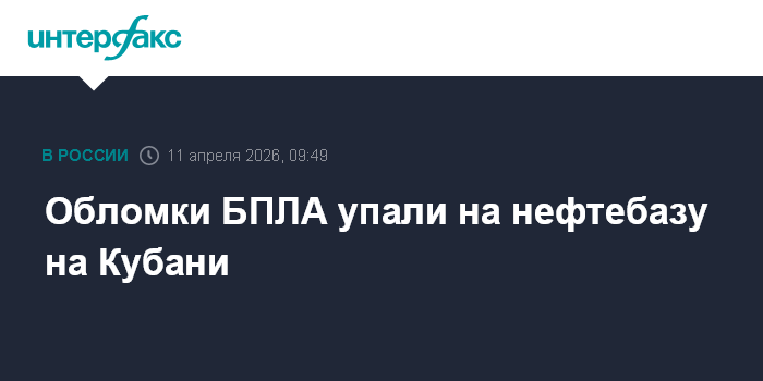 Москва. 11 апреля. INTERFAX.RU - Обломки беспилотников упали на нефтебазу, расположенную в городе Крымске Краснодарского края, сообщил оперативный штаб региона в субботу.