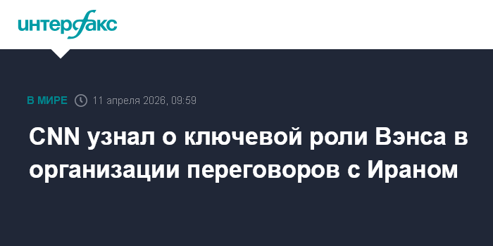 Москва. 11 апреля. INTERFAX.RU - Вице-президент США Джей Ди Вэнс сыграл существенную роль в организации переговоров с Ираном в Исламабаде, сообщает в субботу CNN.
