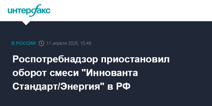 Роспотребнадзор приостановил оборот смеси "Иннованта Стандарт/Энергия" в РФ