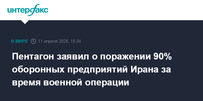 Москва. 11 апреля. INTERFAX.RU - Американские вооруженные силы за время операции "Эпическая ярость" нанесли ракетно-бомбовые удары по 90% иранских предприятий, производивших вооружения и военную технику, сообщает Пентагон, приводя итоговые данные кампании.