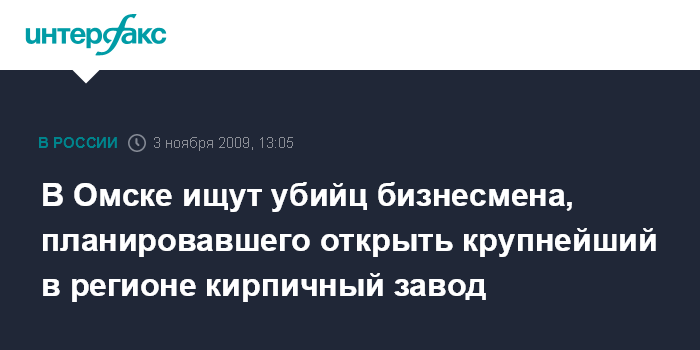 Москва. 3 ноября. INTERFAX.RU – Следственный отдел по Кировскому административному округу Омска СУ СКП РФ по Омской области возбудил уголовное дело по факту убийства директора торгового дома "Железобетонные конструкции" Сергея Вострякова.
