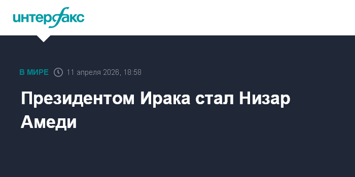 Москва. 11 апреля. INTERFAX.RU - Парламент Ирака избрал кандидата от Патриотического союза Курдистана (ПСК) Низара Амеди президентом страны на заседании, состоявшемся в субботу и бойкотированном Демократической партией Курдистана (ДПК), сообщило в субботу издание Rudaw.