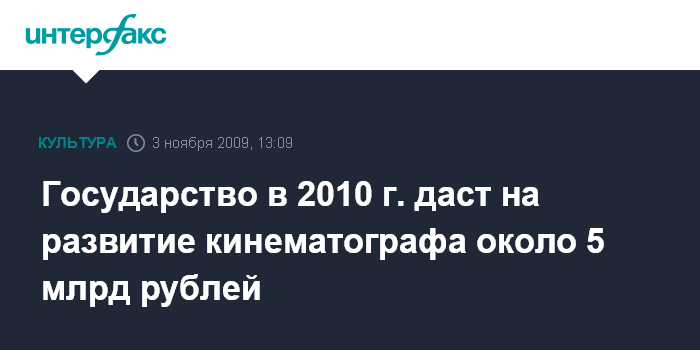 Государство в 2010 г. даст на развитие кинематографа около 5 млрд рублей