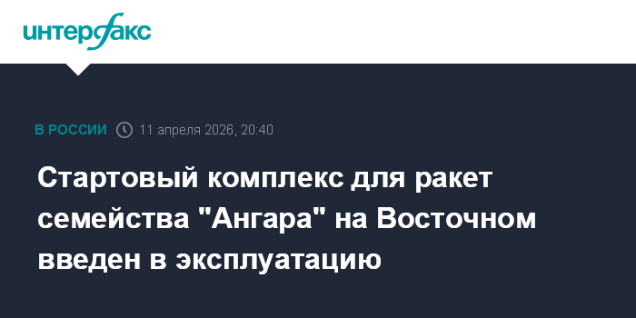 Москва. 11 апреля. INTERFAX.RU - Глава госкорпорации "Роскосмос" Дмитрий Баканов заявил в субботу, что на космодроме Восточный введен в эксплуатацию стартовый комплекс для ракет семейства "Ангара".