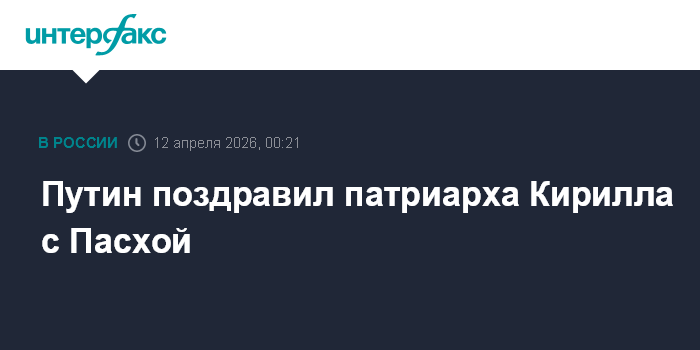 Москва. 12 апреля. INTERFAX.RU - Президент России Владимир Путин поздравил Патриарха Московского и всея Руси Кирилла со Светлым праздником Пасхи.