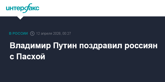 Москва. 12 апреля. INTERFAX.RU - Президент РФ Владимир Путин поздравил православных христиан, всех граждан России, отмечающих Светлое Христово Воскресение.
