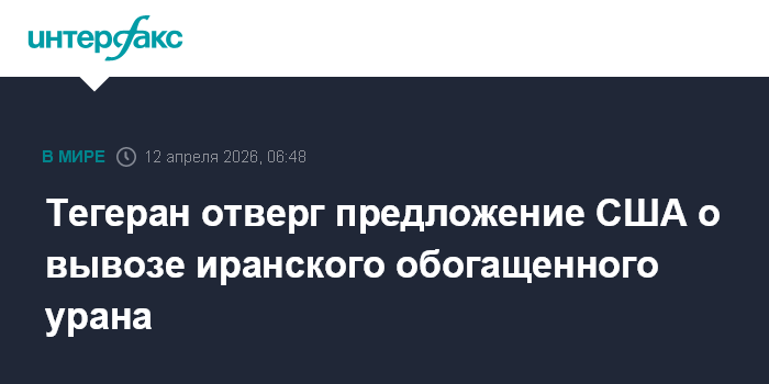 Москва. 12 апреля. INTERFAX.RU - США на переговорах с Ираном настаивали на вывозе с иранской территории запасов обогащенного урана, сообщает в ночь на воскресенье агентство "Тасним".