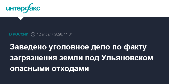 Москва. 12 апреля. INTERFAX.RU - Следственные органы СК по Ульяновской области возбудили уголовное дело по факту незаконного размещения отходов I-IV классов опасности в Кузоватовском районе, сообщает пресс-служба регионального СУ СКР.