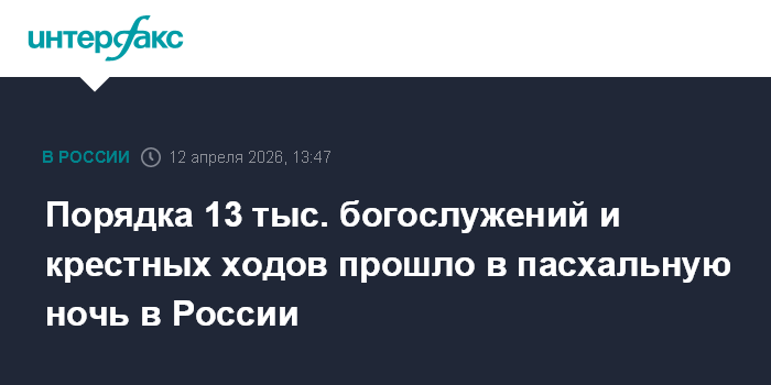 Порядка 13 тыс. богослужений и крестных ходов прошло в пасхальную ночь в России