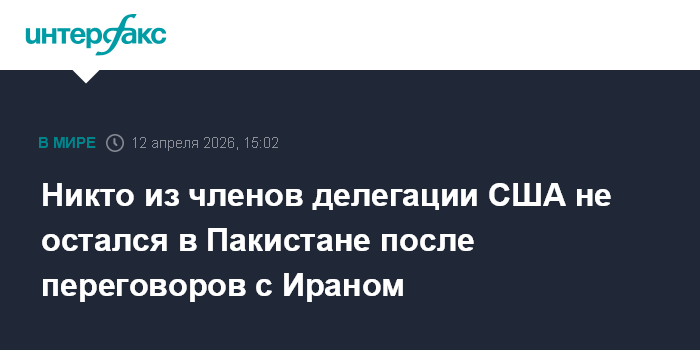 Москва. 12 апреля. INTERFAX.RU - Делегация США в полном составе по завершении переговоров с Ираном покинула Пакистан, сообщает в воскресенье CBS со ссылкой на источники.