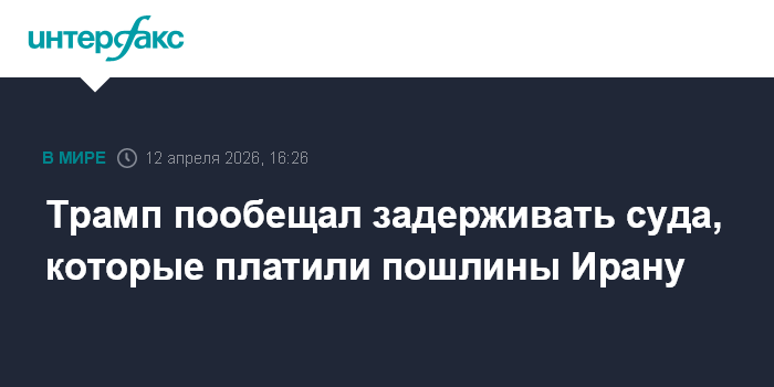 "Я проинструктировал наши ВМС, чтобы они выслеживали и перехватывали в международных водах каждое судно, которое оплачивало пошлину Ирану", - написал он в соцсети Truth Social.