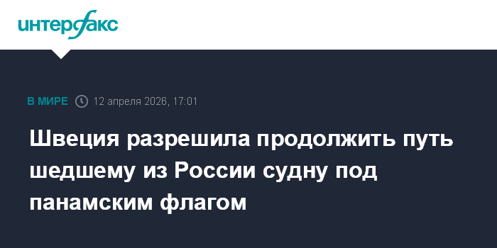 Москва. 12 апреля. INTERFAX.RU - Власти Швеции разрешили продолжить путь грузовому судну Hui Yuan под панамским флагом, направлявшемуся из России в испанский Лас-Пальмас.
