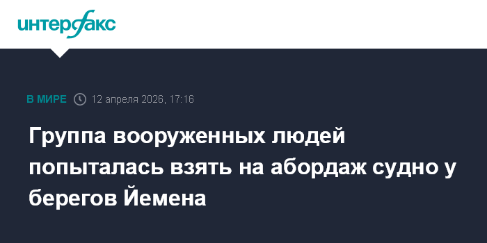 Москва. 12 апреля. INTERFAX.RU - Экипаж судна, следовавшего курсом у берегов Йемена, помешало группе вооруженных лиц высадиться на борт, сообщает Управление морских торговых операций Великобритании (UKMTO).
