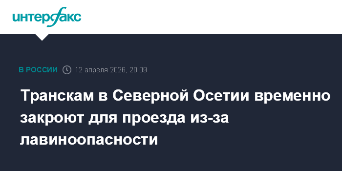 "В связи с лавиноопасностью и невозможностью обеспечения безопасного проезда по Транскавказской автомагистрали запрещено движение всех видов автотранспортных средств на участке н.п. Бурон - Северный Портал Рокского тоннеля в обоих направлениях с 21:00 мск 12 апреля 2026 года до особого распоряжения", - говорится в сообщении.