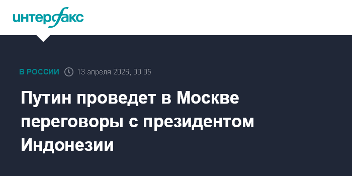Москва. 13 апреля. INTERFAX.RU - Президент РФ Владимир Путин в понедельник проведет в Москве переговоры с президентом Индонезии Прабово Субианто, который посетит РФ с рабочим визитом.