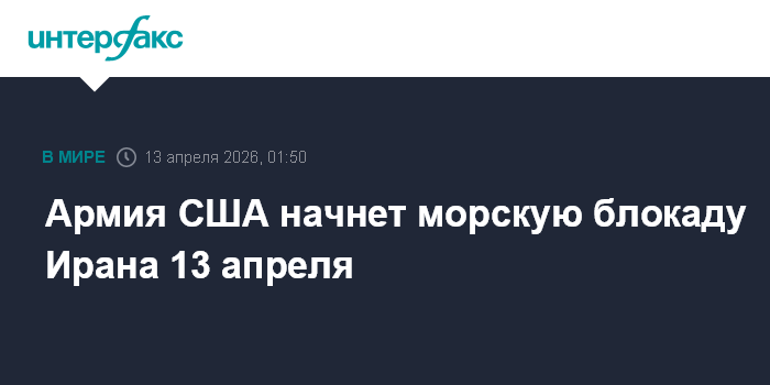 "Силы CENTCOM начнут блокировку всего морского трафика, входящего в иранские порты и выходящего из них, 13 апреля в 10:00 по восточному времени США (17:00 по Москве - ИФ) в соответствии с объявлением президента", - сообщило командование в соцсети X.