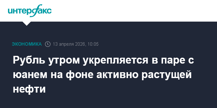 Москва. 13 апреля. INTERFAX.RU - Китайский юань слабеет на Московской бирже при открытии торгов в понедельник, рубль укрепляется на фоне активно растущей нефти.