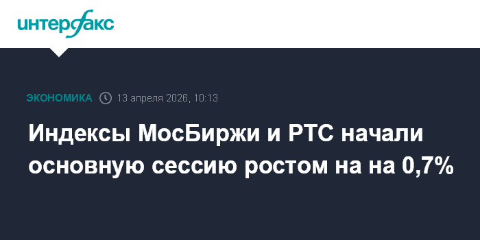Индексы МосБиржи и РТС начали основную сессию ростом на на 0,7%