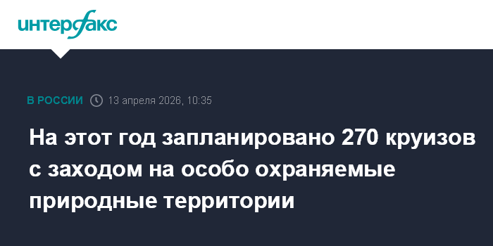 Москва. 13 апреля. INTERFAX.RU - Более 270 морских и речных круизов запланировано на летний сезон 2026 года с заходом на особо охраняемые природные территории (ООПТ), в них отправятся более 24 тыс. человек, сообщает в понедельник Минприроды России.