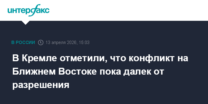 Москва. 13 апреля. INTERFAX.RU - Конфликт на Ближнем Востоке пока далек от разрешения, заявил журналистам пресс-секретарь президента РФ Дмитрий Песков, выразив надежду, что ситуация вновь не перейдет в "вооруженное русло".