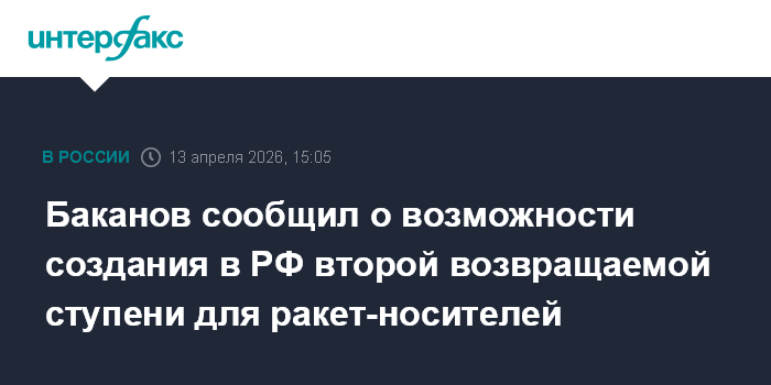 1 апреля Баканов сообщал, что демонстратор первой многоразовой ступени ракеты "Амур-СПГ" планируется представить в течение полутора-двух лет.