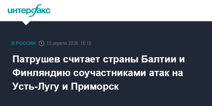 Москва. 13 апреля. INTERFAX.RU - Страны Прибалтики и Финляндия являются соучастниками атак украинских беспилотников на российские порты в Ленинградской области, заявил помощник президента РФ Николай Патрушев.