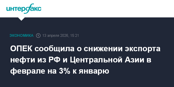 ОПЕК сообщила о снижении экспорта нефти из РФ и Центральной Азии в феврале на 3% к январю
