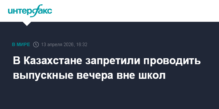Москва. 13 апреля. INTERFAX.RU - В Казахстане запретили проводить выпускные вечера вне учебных учреждений и собирать деньги на их проведение, сообщило Министерство просвещения. Соответствующий приказ приняли совместно Минпросвещения, МВД и местные органы власти.