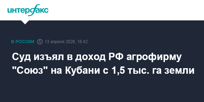 Суд изъял в доход РФ агрофирму "Союз" на Кубани с 1,5 тыс. га земли
