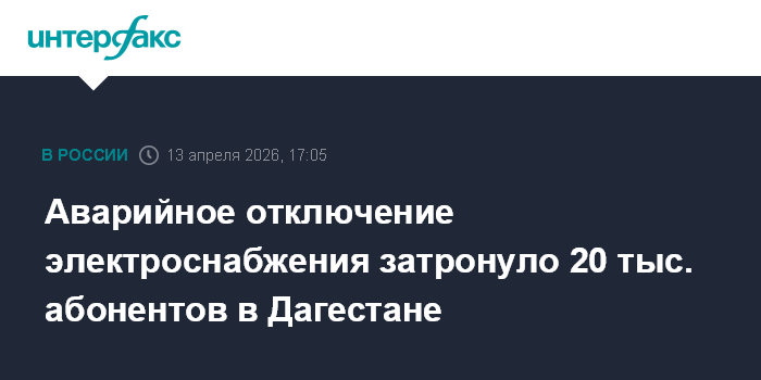 Аварийное отключение электроснабжения затронуло 20 тыс. абонентов в Дагестане