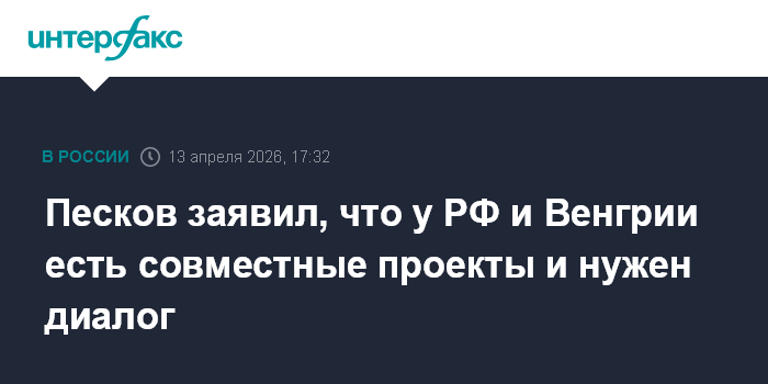 Песков заявил, что у РФ и Венгрии есть совместные проекты и нужен диалог