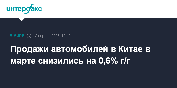 Продажи автомобилей в Китае в марте снизились на 0,6% г/г