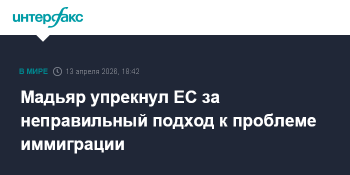 Москва. 13 апреля. INTERFAX.RU - Лидер партии "Тиса", победившей на парламентских выборах в Венгрии, Петер Мадьяр заявил в понедельник, что недоволен подходом ЕС к проблеме иммиграции.
