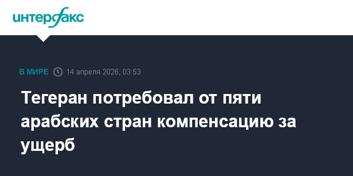 Москва. 14 апреля. INTERFAX.RU - Постпред Ирана при ООН Амир Саид Иравани заявил о требовании от Бахрейна, Саудовской Аравии, Катара, ОАЭ и Иордании компенсации за ущерб, причиненный Ирану в результате американо-израильской операции, поскольку их территории использовались для нанесения ударов по Исламской Республике.