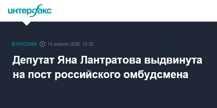 Голосование по кандидатуре Лантратовой может состояться на пленарном заседании Госдумы 23-24 апреля. "Все руководители думских фракций в ходе предварительных дискуссий высказали готовность поддержать кандидатуру Лантратовой", - добавил источник агентства.