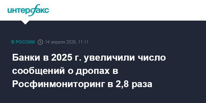 Банки в 2025 г. увеличили число сообщений о дропах в Росфинмониторинг в 2,8 раза