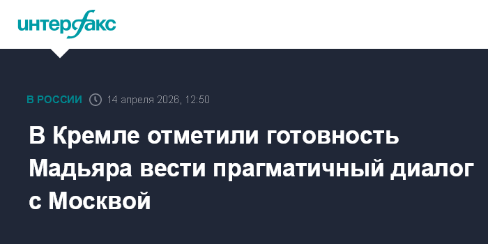 Москва. 14 апреля. INTERFAX.RU - В Кремле отметили в заявлениях лидера победившей на выборах в Венгрии партии "Тиса" Петера Мадьяра готовность к прагматичному диалогу с Москвой, готовы к нему и ждут первых шагов от нового венгерского правительства.