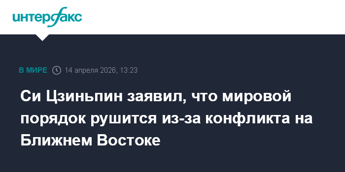 Москва. 14 апреля. INTERFAX.RU - Председатель КНР Си Цзиньпин заявил, что мир находится в хаосе из-за конфликта на Ближнем Востоке и заверил, что Китай будет способствовать его урегулированию, сообщает во вторник Bloomberg.