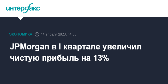 Москва. 14 апреля. INTERFAX.RU - JPMorgan Chase & Co., крупнейший банк США по объему активов, в первом квартале 2026 года увеличил чистую прибыль на 13%.