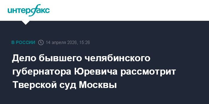 "Постановлением Центрального районного суда Челябинска от 6 апреля 2026 года уголовное дело в отношении Юревича М.В., Москалюка А.Е. передано по подсудности в Тверской районный суд Москвы для рассмотрения по существу", - говорится в сообщении.