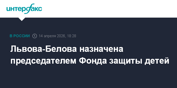 Москва. 14 апреля. INTERFAX.RU - Президент РФ Владимир Путин своим указом назначил Уполномоченного при президенте России по правам ребенка Марию Львову-Белову председателем Общероссийской общественно-государственной организации "Фонд защиты детей".