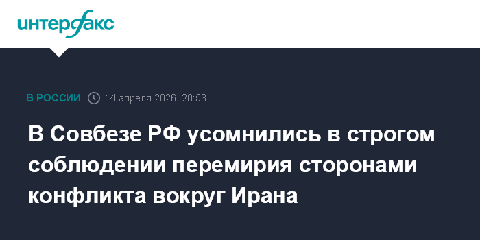 Москва. 14 апреля. INTERFAX.RU - Строгое соблюдение сторонами конфликта вокруг Ирана положений перемирия вызывает сомнения, стороны обменивались взаимными ударами, заявили в пресс-службе аппарата Совбеза РФ во вторник.