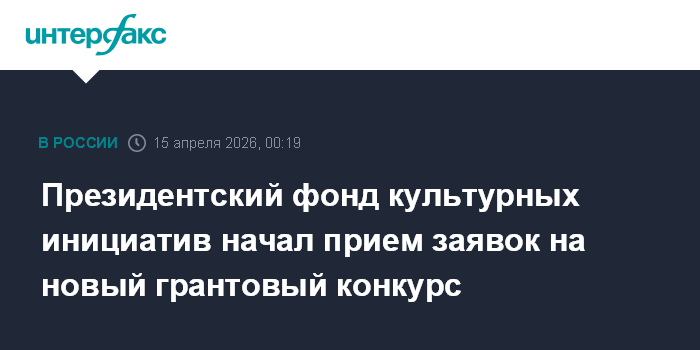 Москва. 15 апреля. INTERFAX.RU - Заявочная компания на новый, 17 грантовый конкурс Президентского фонда культурных инициатив стартовала в среду, сообщили в пресс-службе фонда.