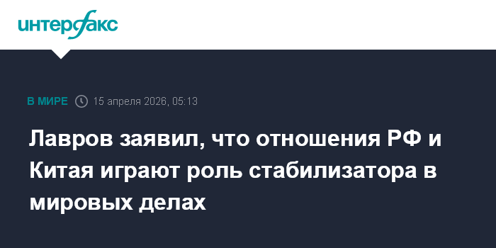 Лавров заявил, что отношения РФ и Китая играют роль стабилизатора в мировых делах