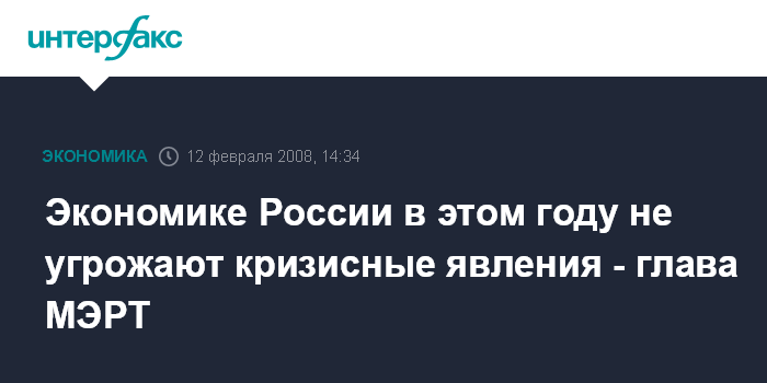 Экономике России в этом году не угрожают кризисные явления - глава МЭРТ
