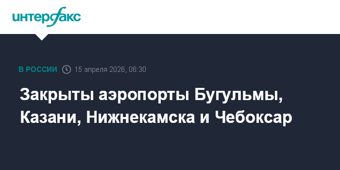Москва. 15 апреля. INTERFAX.RU - Аэропорты Бугульмы, Казани, Нижнекамска и Чебоксар приостановили обслуживание рейсов, сообщили в Росавиации.